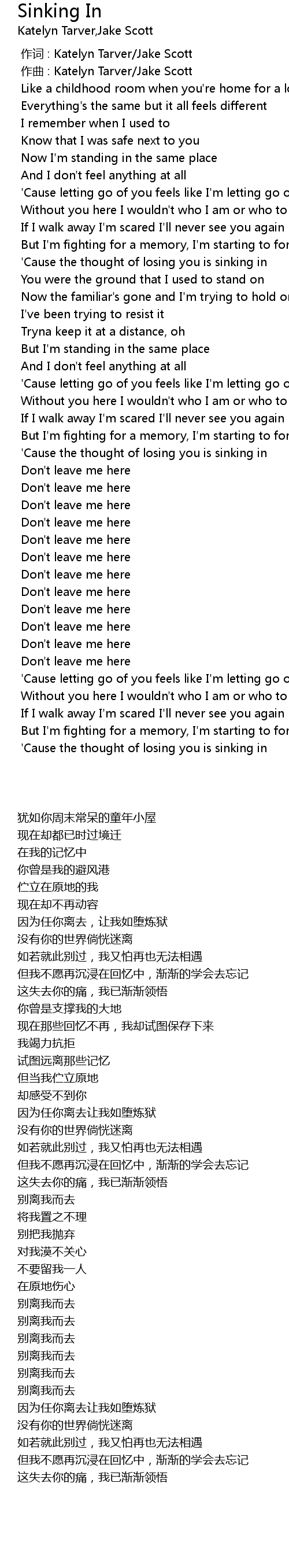 | [03:26.607] | 'Cause the thought of losing you is sinking in |
