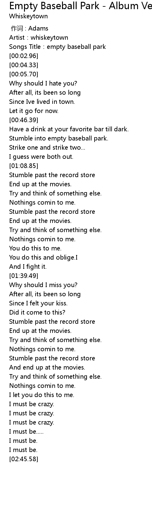| Song | Empty Baseball Park - Album Version (Baseball Park Sessions) |