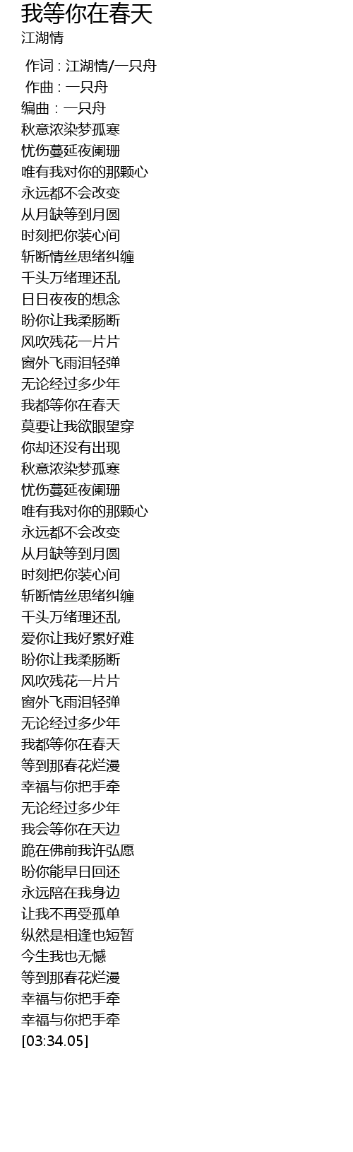 | [02:40.82] | wǒ dōu děng nǐ zài chūn tiān |