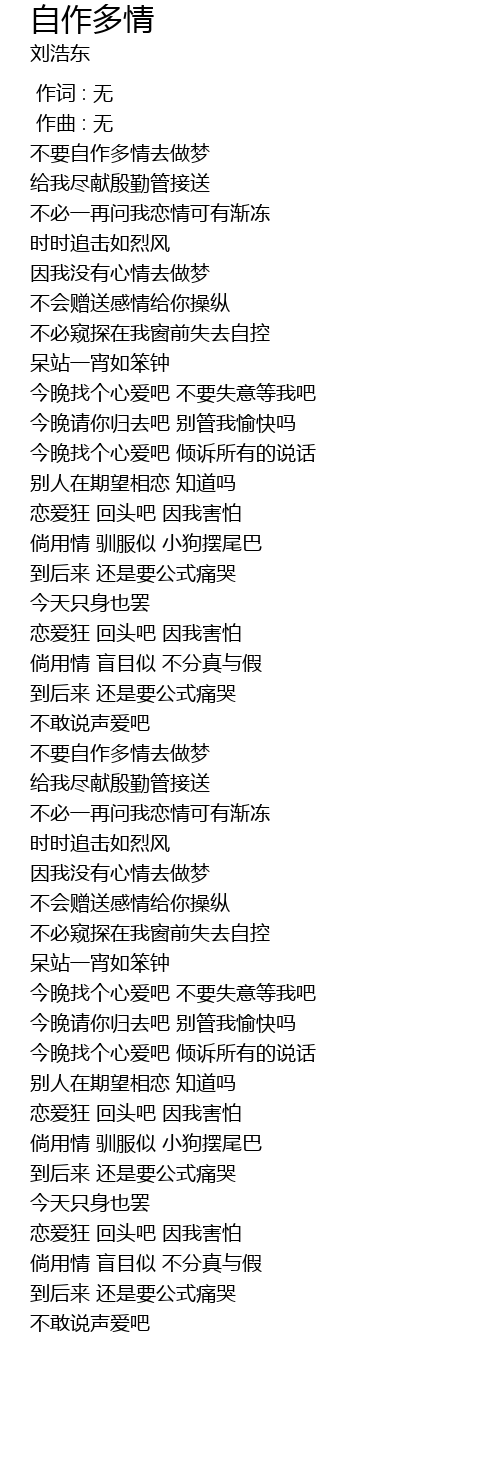 | [02:43.843] | bú yào zì zuò duō qíng qù zuò mèng |