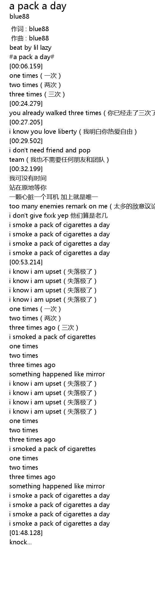 | [00:43.703] | i smoke a pack of cigarettes a day |