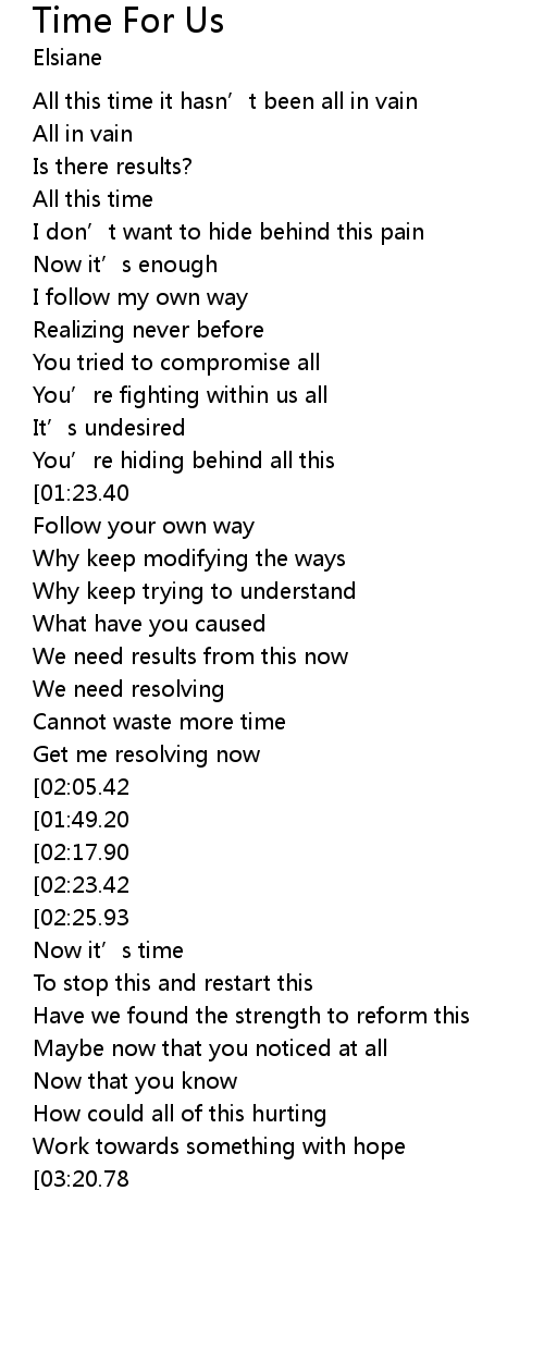 | [03:15.26][03:20.78][03:26.56][03:31.83] | This is the time for us only Only only |