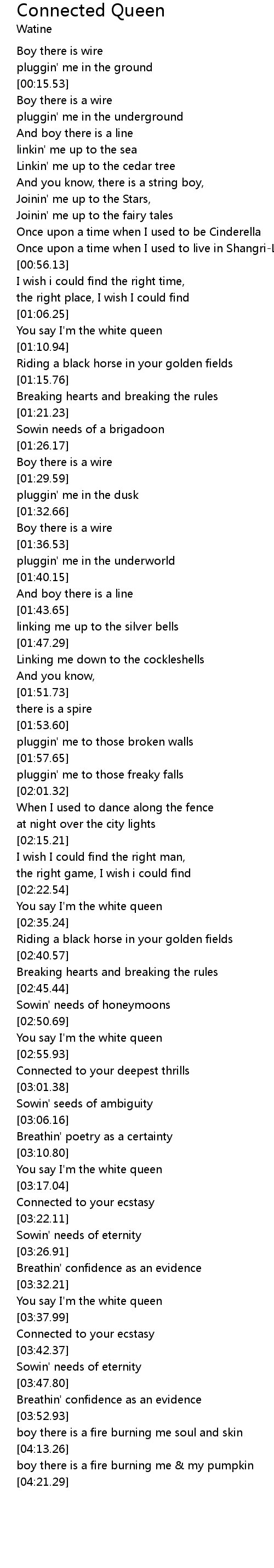 You say I'm the white queen |