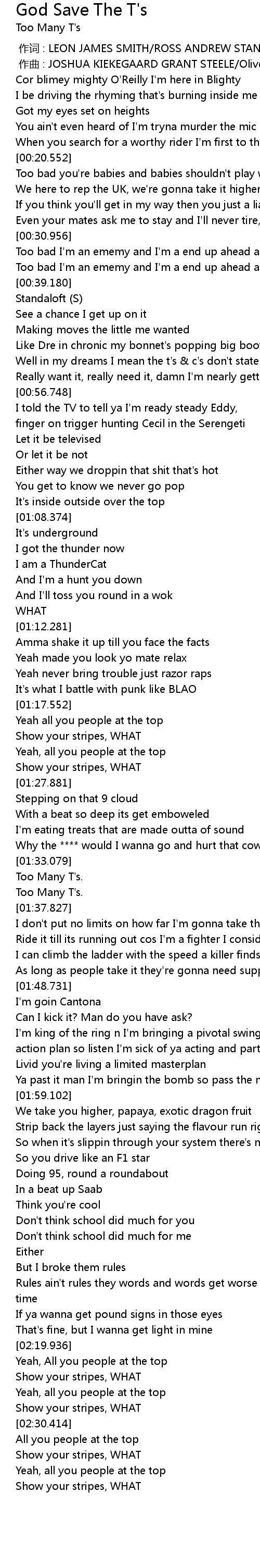 | [02:14.772] | Rules ain' t rules they words and words get worse and break up all the time |