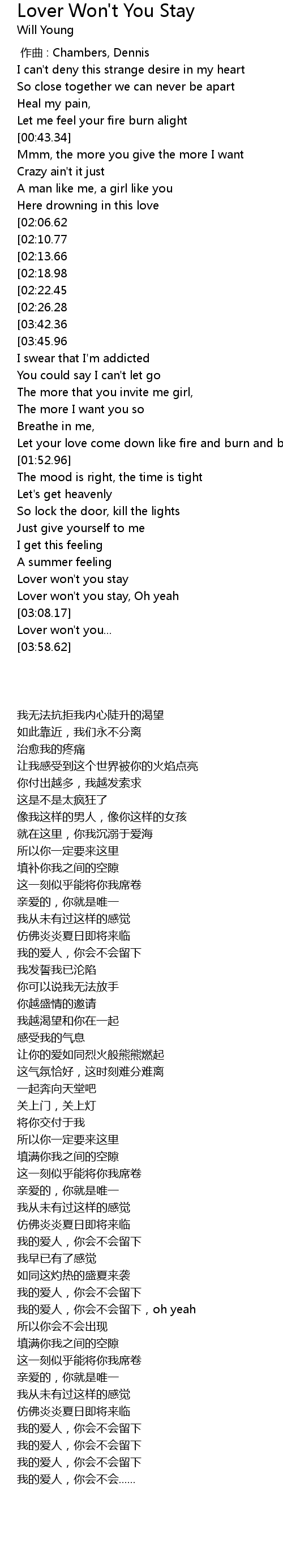 | [02:58.89] | Lover won't you stay, Oh yeah |