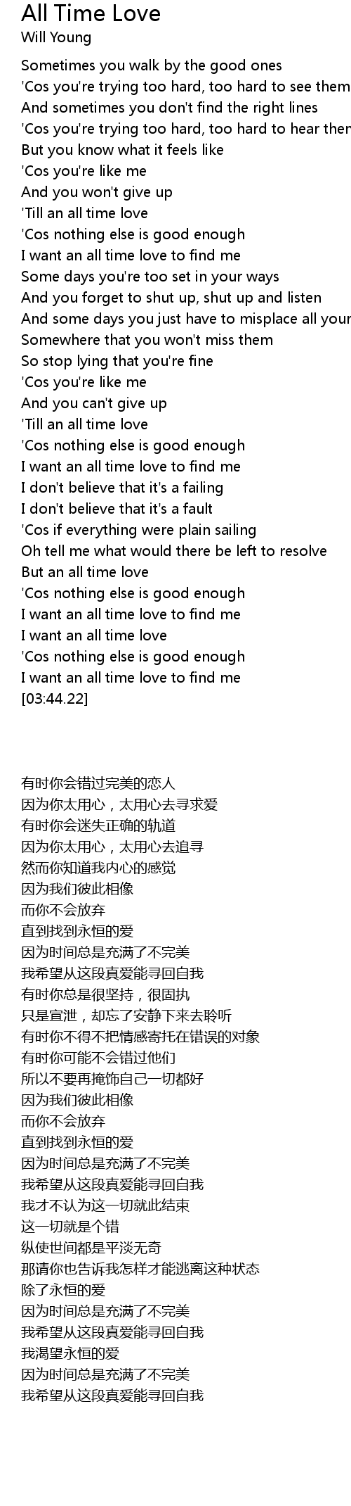I want an all time love |