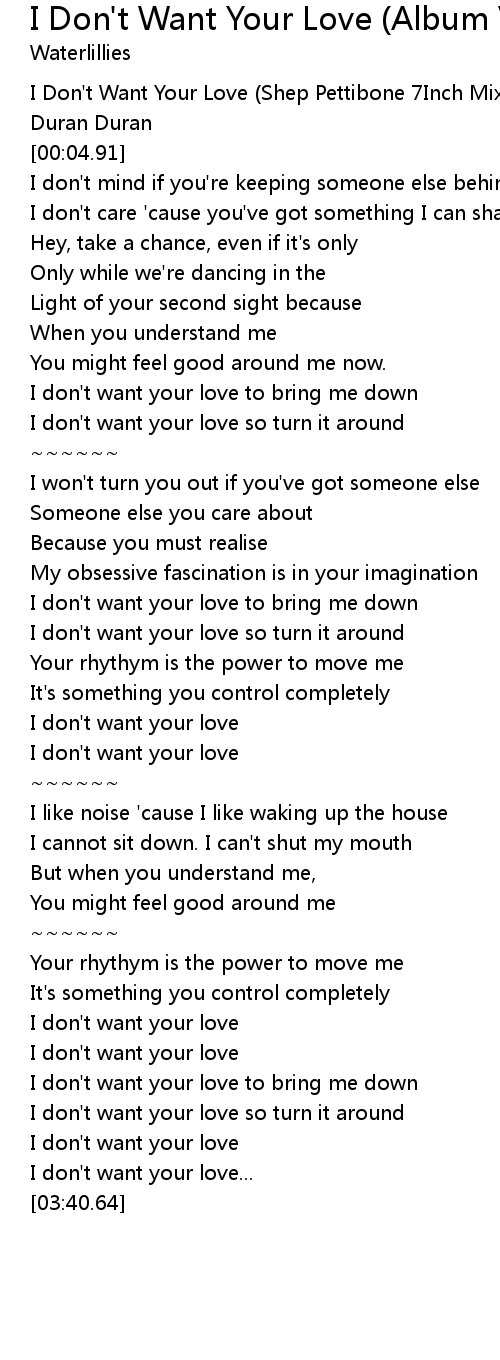[00:00.00] I Don't Want Your Love (Shep Pettibone 7Inch Mix)