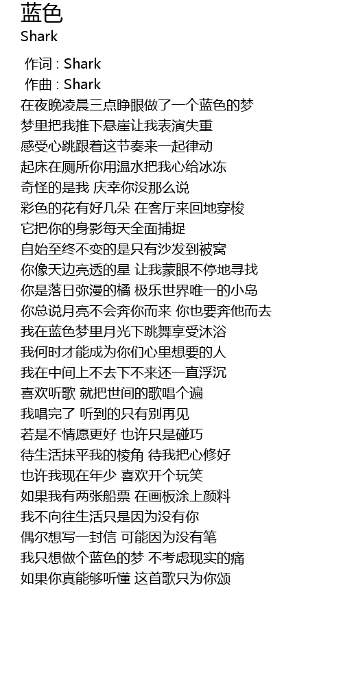 | [00:00.000] | 作词 : Shark |