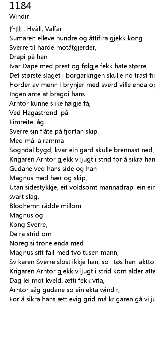 | 作曲 : Hvàll, Valfar | |
