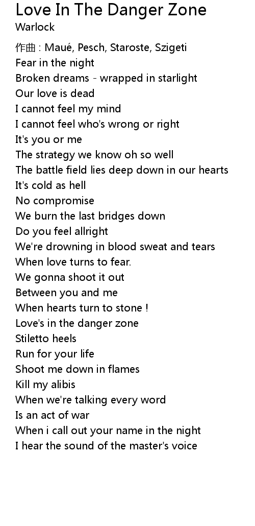 | Love's in the danger zone | |