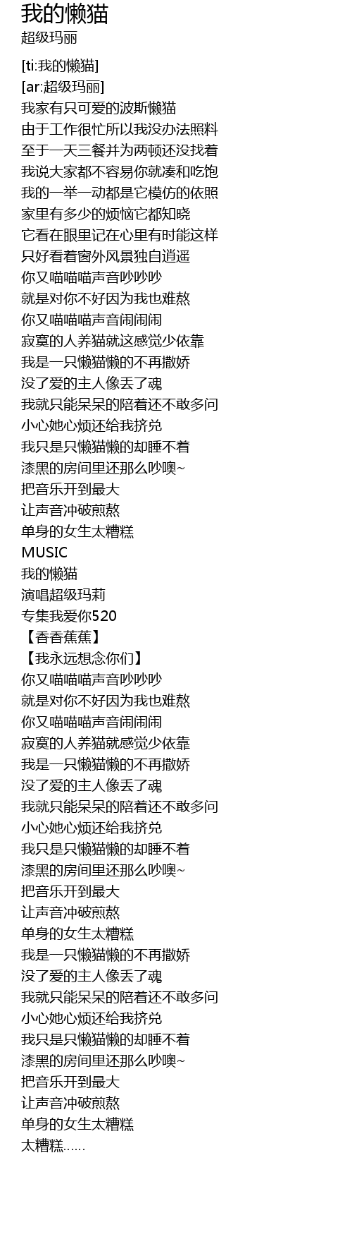 | [03:22.242] | 我是一只懒猫懒的不再撒娇 |