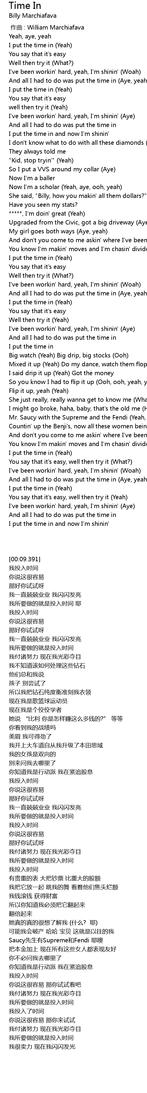 | [00:49.776] | She said, " Billy, how you makin' all them dollars?" Wait Ooh |