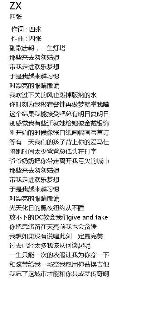 | [00:01.00] | zuò qǔ : sì zhāng |