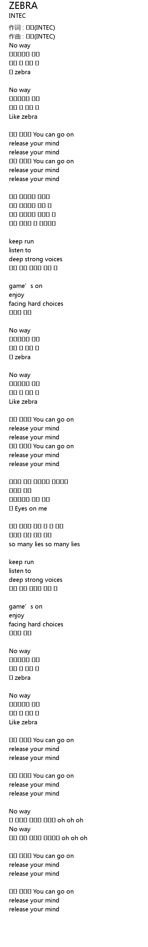 | 作词 : 인택(INTEC) | |