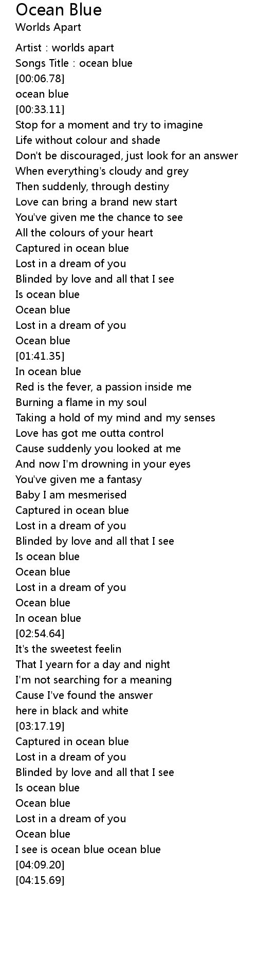 | [03:55.74] | Ocean blue |