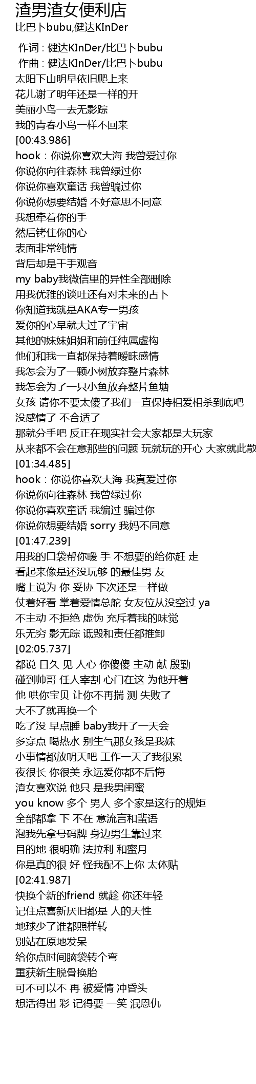 | [00:00.000] | 作词 : 健达KInDer/比巴卜bubu |