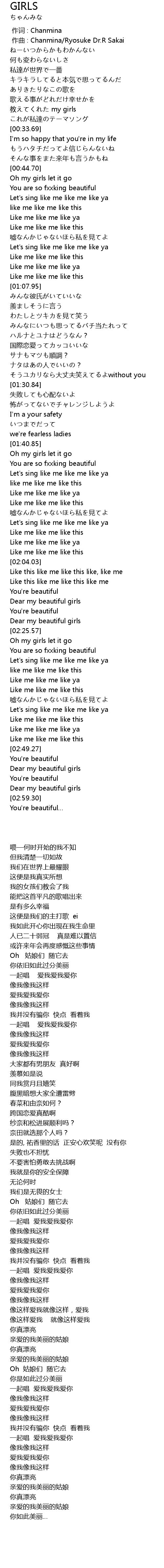 | [02:51.93] | Dear my beautiful girls |