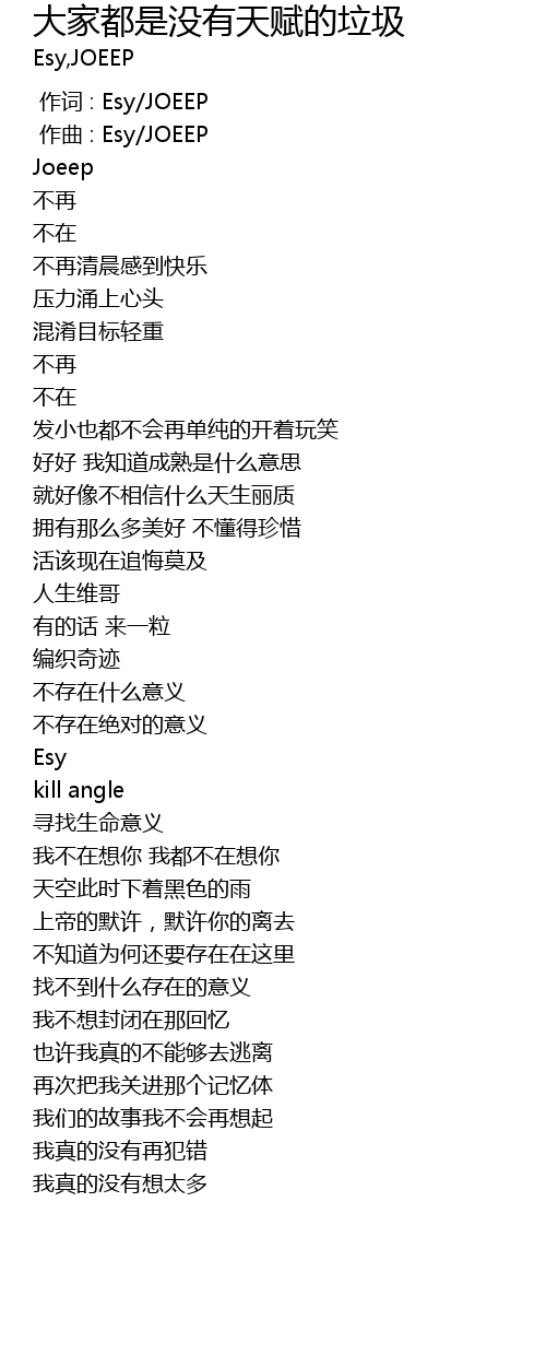 | [00:00.000] | 作词 : Esy/JOEEP |
