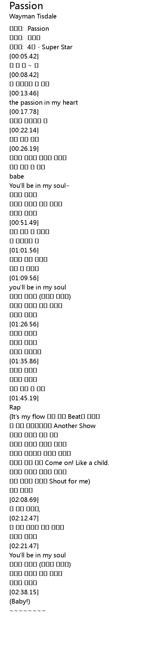 | [00:01.42] | 곡제목: Passion |
