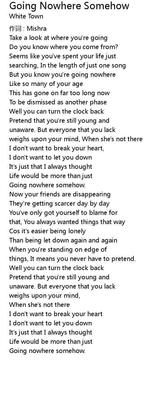 | But you know you' re going nowhere | |