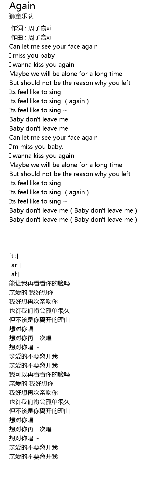 | [01:40.31] | Baby don' t leave me |