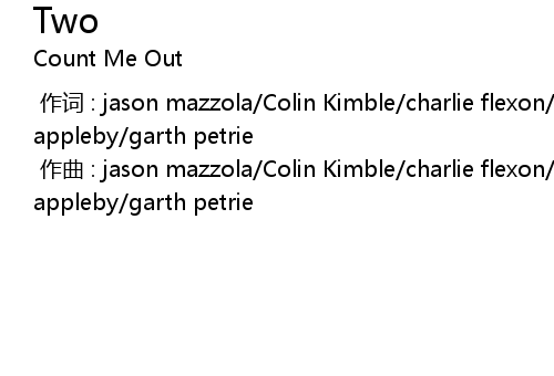 | [00:00.00-1] | 作曲 : jason mazzola/Colin Kimble/charlie flexon/pete appleby/garth petrie |