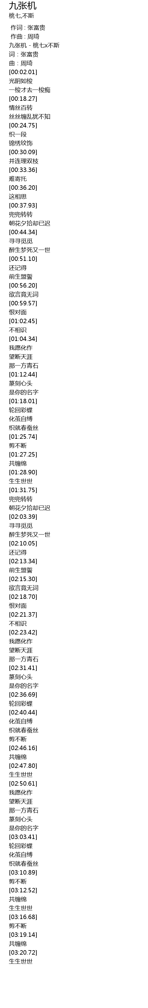 | [00:00.45] | 九张机 - 桃七x不斯 |