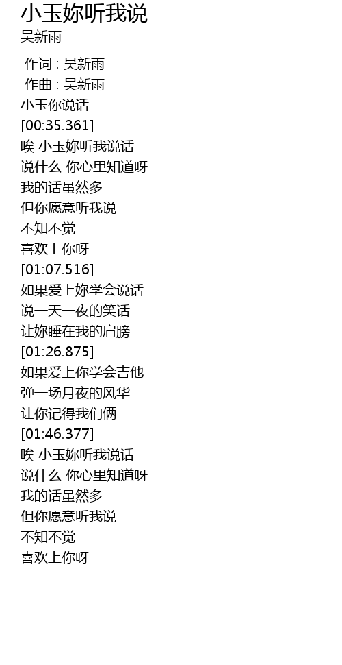 | [00:37.371] | āi xiǎo yù nǎi tīng wǒ shuō huà |