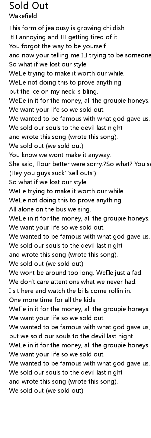 | Song | Sold Out |