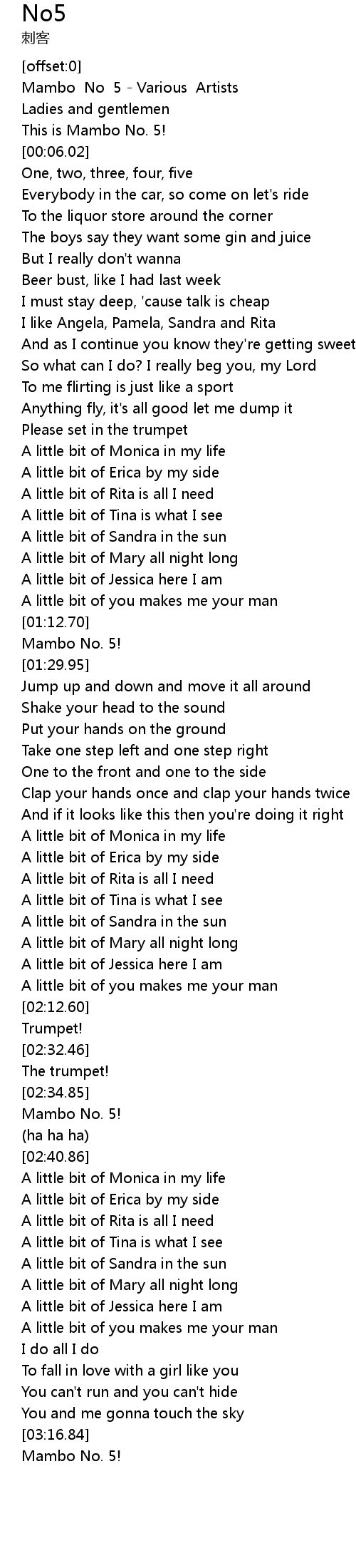 This is Mambo No. 5! |