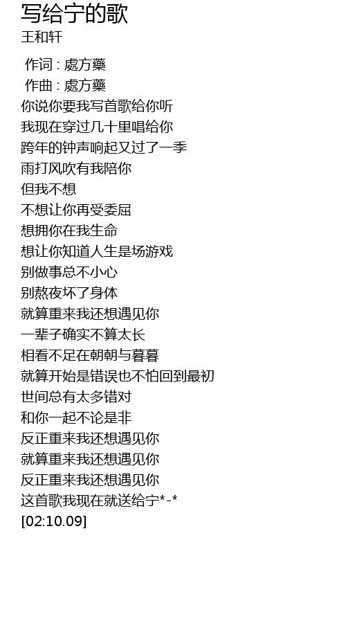 | [01:56.36] | 这首歌我现在就送给宁*-* |