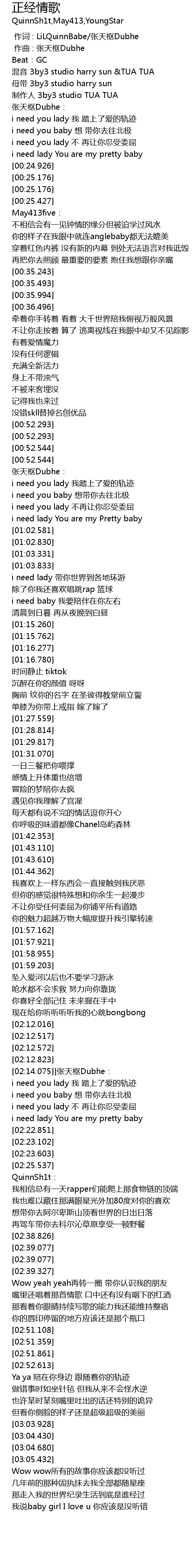 | [03:24.231] | wǒ shuō baby girl I love u nǐ yīng gāi shì méi tīng cuò |