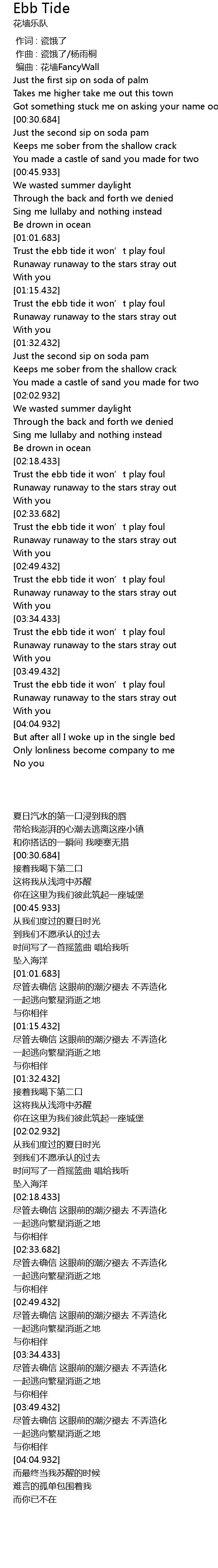 | [00:02.000] | 编曲 : 花墙FancyWall |