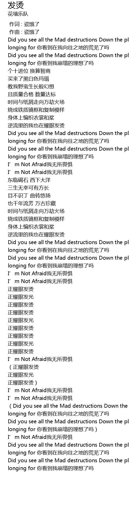 | [02:30.683] | Did you see all the Mad destructions Down the places I‘ve been longing for 你看到在我向往之地的荒芜了吗 |