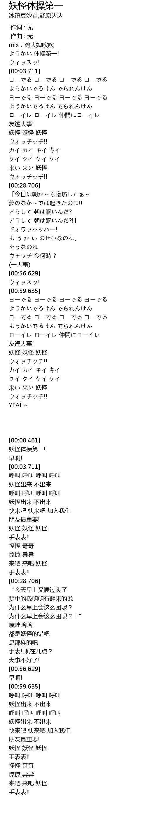 | [00:20.957] | 妖怪 妖怪 妖怪 |