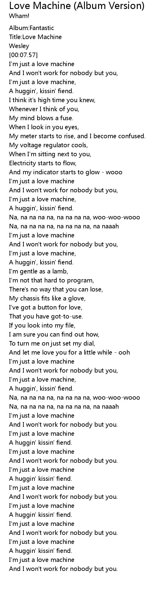 | [01:54.47] | I'm just a love machine |