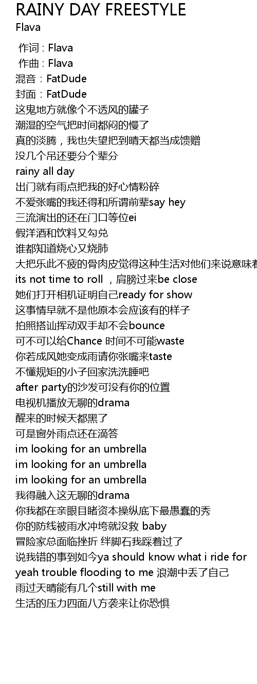 | [00:00.000] | 作词 : Flava |