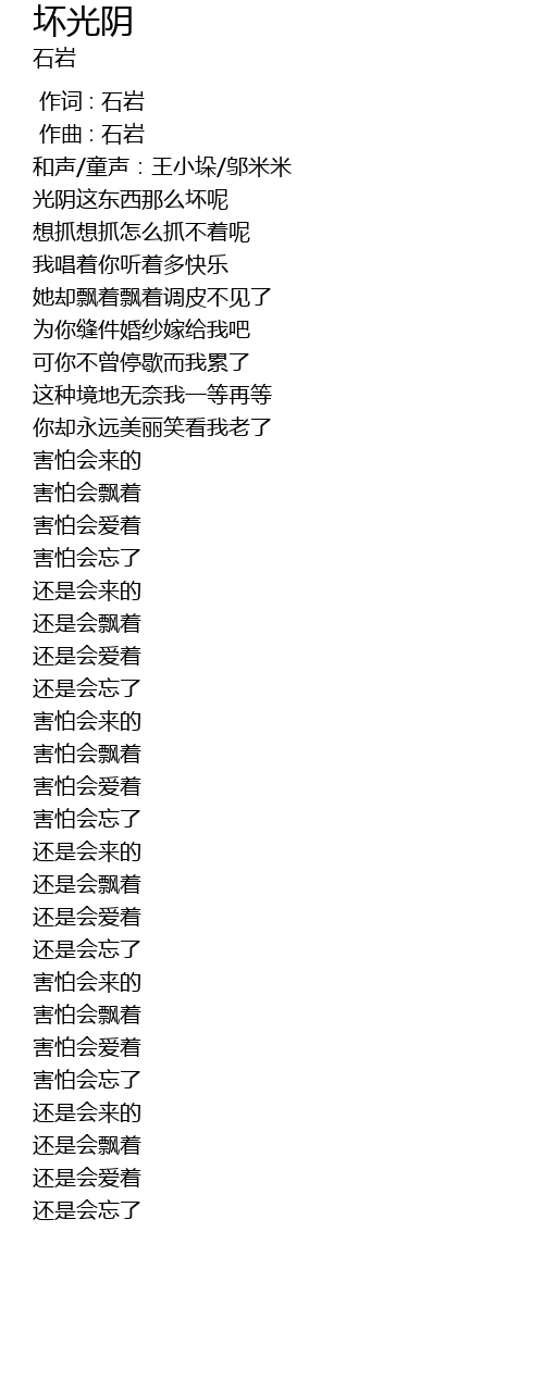 | [00:00.00] | 作词 : 石岩 |