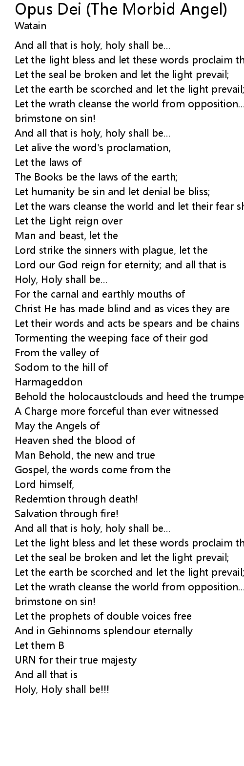 Opus Dei (The Morbid Angel) Lyrics