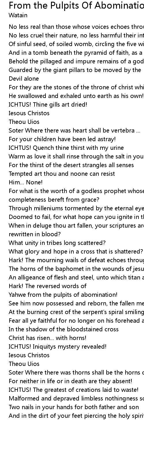 From the Pulpits Of Abomination Lyrics