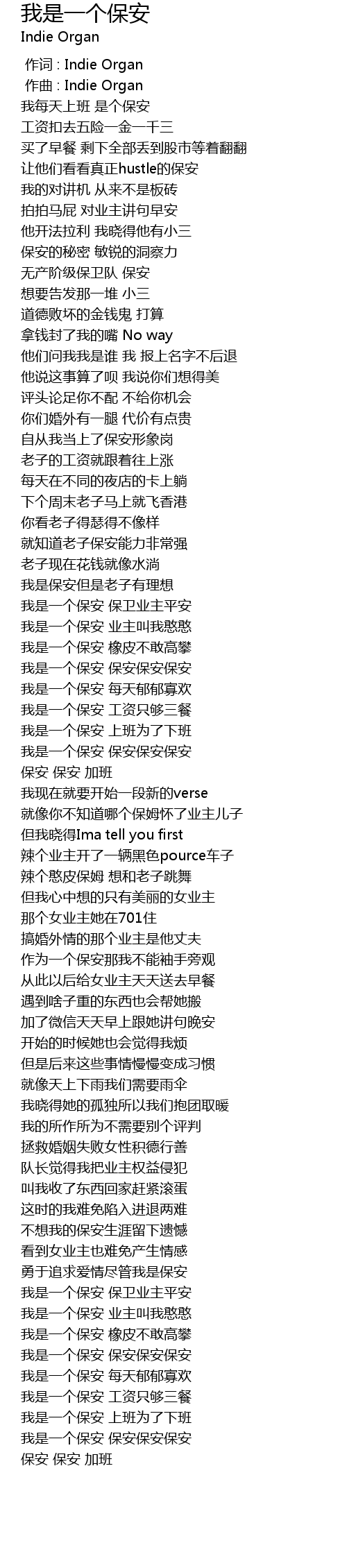 | [01:14.182] | 我是一个保安 保安保安保安 |