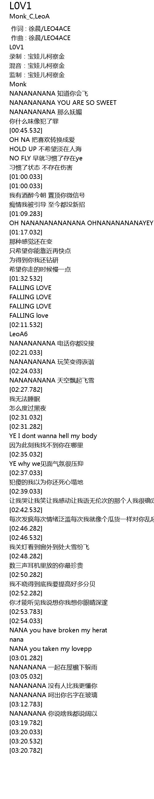 | [03:01.032] | NANA you taken my lovepp |