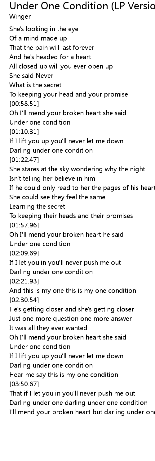 [04:04.57] I'll mend your broken heart but darling under one condition