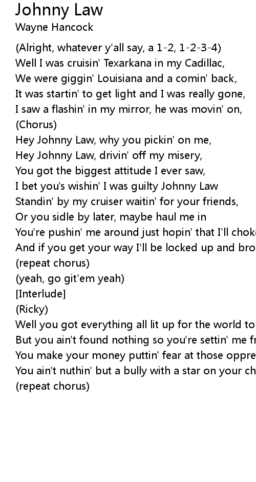 I bet you's wishin' I was guilty Johnny Law |