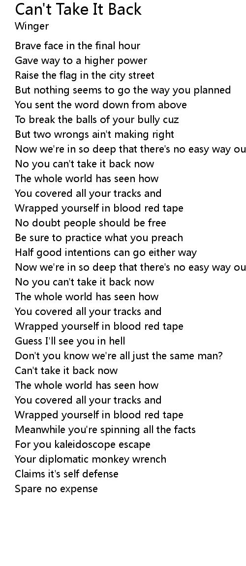 | No you can't take it back now | |