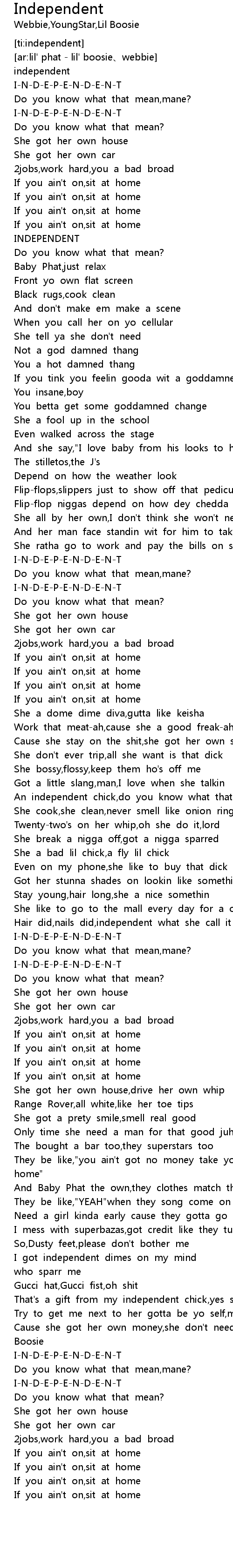 | [02:19.956] | I-N-D-E-P-E-N-D-E-N-T |