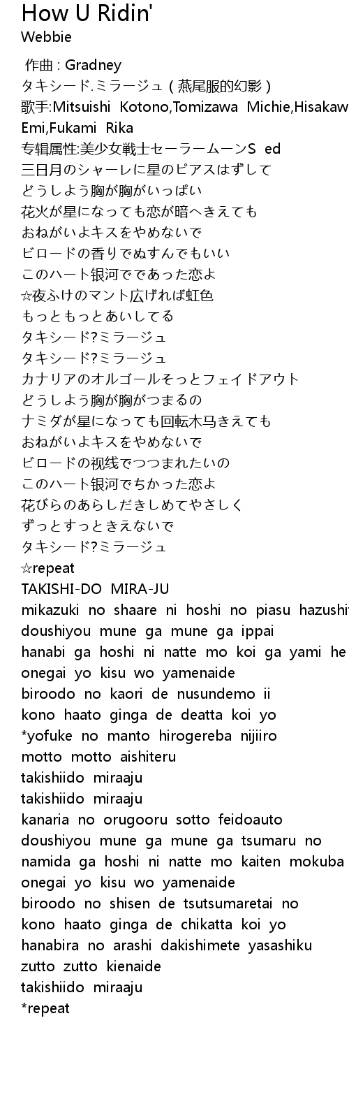 | [00:11.247] | 专辑属性:美少女戦士セーラームーンS ed |