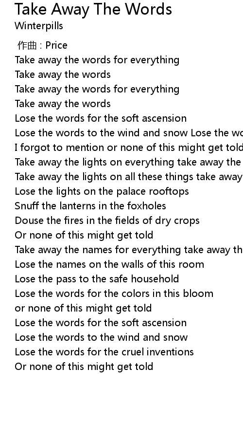 | [00:52.971] | Take away the lights on everything take away the lights |