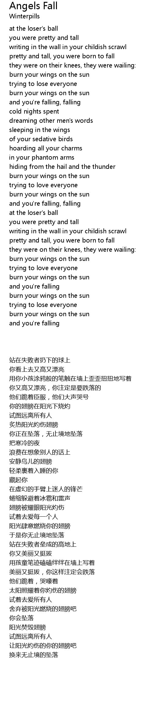 pretty and tall, you were born to fall |