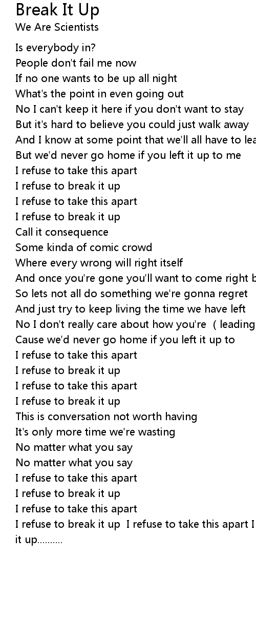 | [02:28.66] | I refuse to break it up I refuse to take this apart I refuse to break it up.......... |